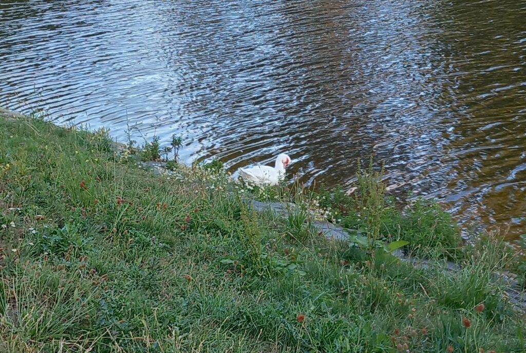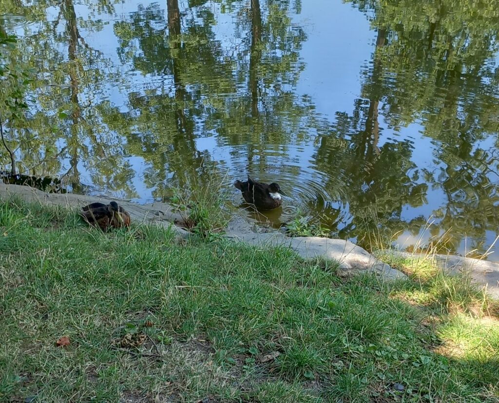 V roce 2025 jsem na hladině pozorovala bílou velkou kachnu a černou kachnu s bílou náprsenkou. Měla jsem možnost zeptat se RNDr. Smrčka, odborníka, který žije u nás v Ďáblicích, o jaké ptáky jde. Vysvětlil mi, že tito jedinci jsou kříženci s chovnými druhy kachen.