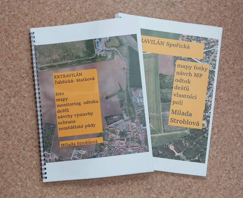 Chodím po extravilánu a pozoruji, zakresluji. Čtu v mapách a v katastru nemovitostí. Vytvořila jsem několik databází informací – fotografie, mapy, informace z katastru nemovitostí jako podklad pro pozemkové úpravy. Fotografiemi mohu i doložit nedávné úpravy terénu nad obcí, které mohly pracovat s dešťovkou a nestalo se tak. Někdo namítá, že se už zadrželo významné množství dešťů Na cihelně – projekt Doma je doma. Převedl se objem dešťů přes nádvoří statku RŘK. Retenční nádrž dalšího sídliště Bydlení Ďáblice mezi Šenovskou a Statkovou se právě buduje.
